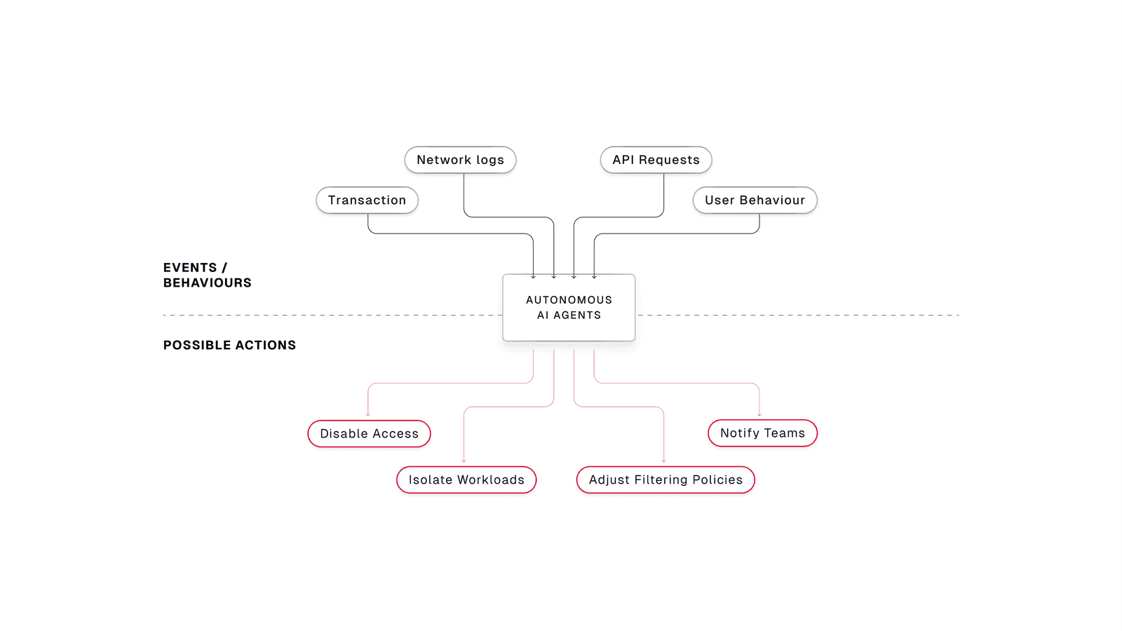 An AI agent examines network behavior, location, historical patterns, and risk factors. It escalates authentication challenges, alerts security teams, or blocks access based on the full picture.