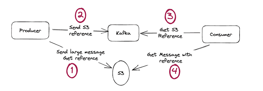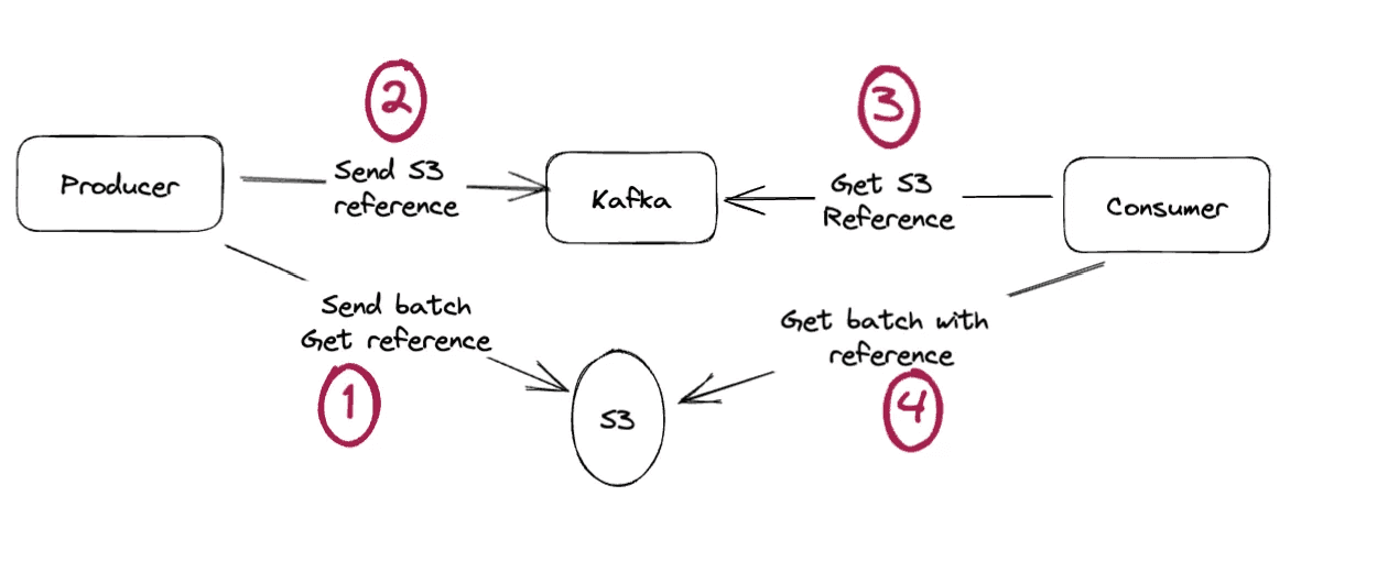 - Consumers retrieve the reference and fetch the data from S3