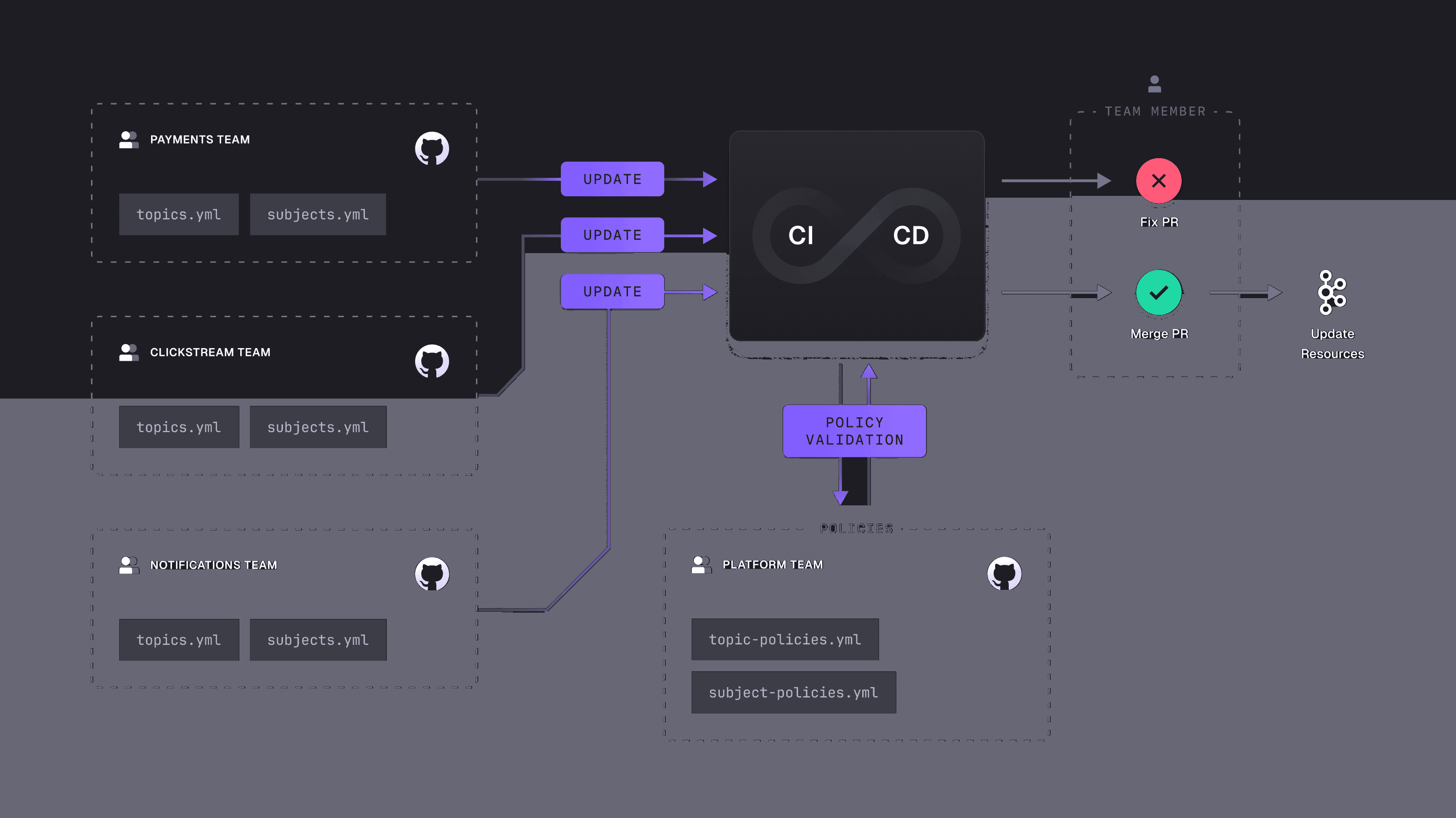 Automating these processes lets developers ship changes faster, introduces governance best practices, and reduces the burden on platform teams running Kafka operations.