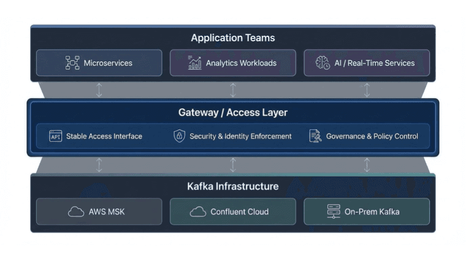 One large enterprise airline undergoing a multi-year middleware modernization described this clearly. As they migrated from legacy messaging systems to Kafka, avoiding repeated application changes during each phase was critical to maintaining delivery timelines. Abstracting infrastructure changes behind a stable access layer allowed migrations to proceed incrementally instead of as high-risk cutovers.