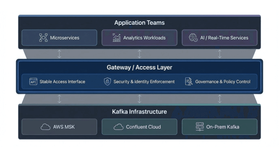 One large enterprise airline undergoing a multi-year middleware modernization described this challenge clearly. As they migrated from legacy messaging systems to Kafka, avoiding repeated application changes during each phase was critical to maintaining delivery timelines and reducing risk. Abstracting infrastructure changes behind a stable access layer allowed migrations to proceed incrementally instead of as high-risk cutovers.