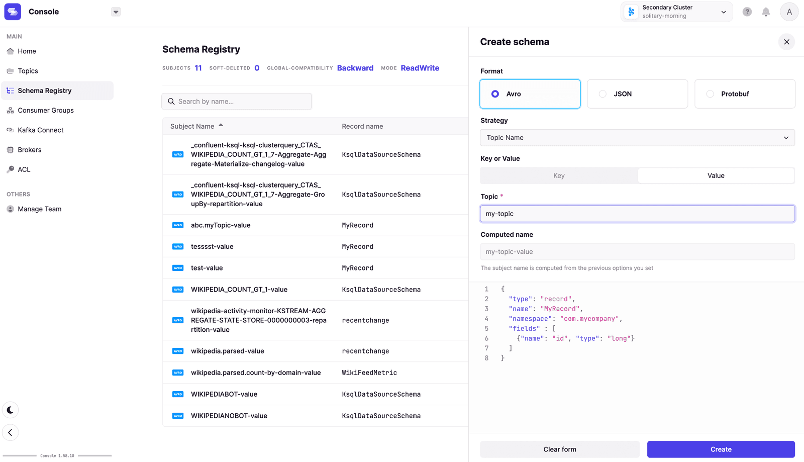 Use a schema registry. Conduktor works with all major registries including Confluent, AWS Glue, and Aiven.