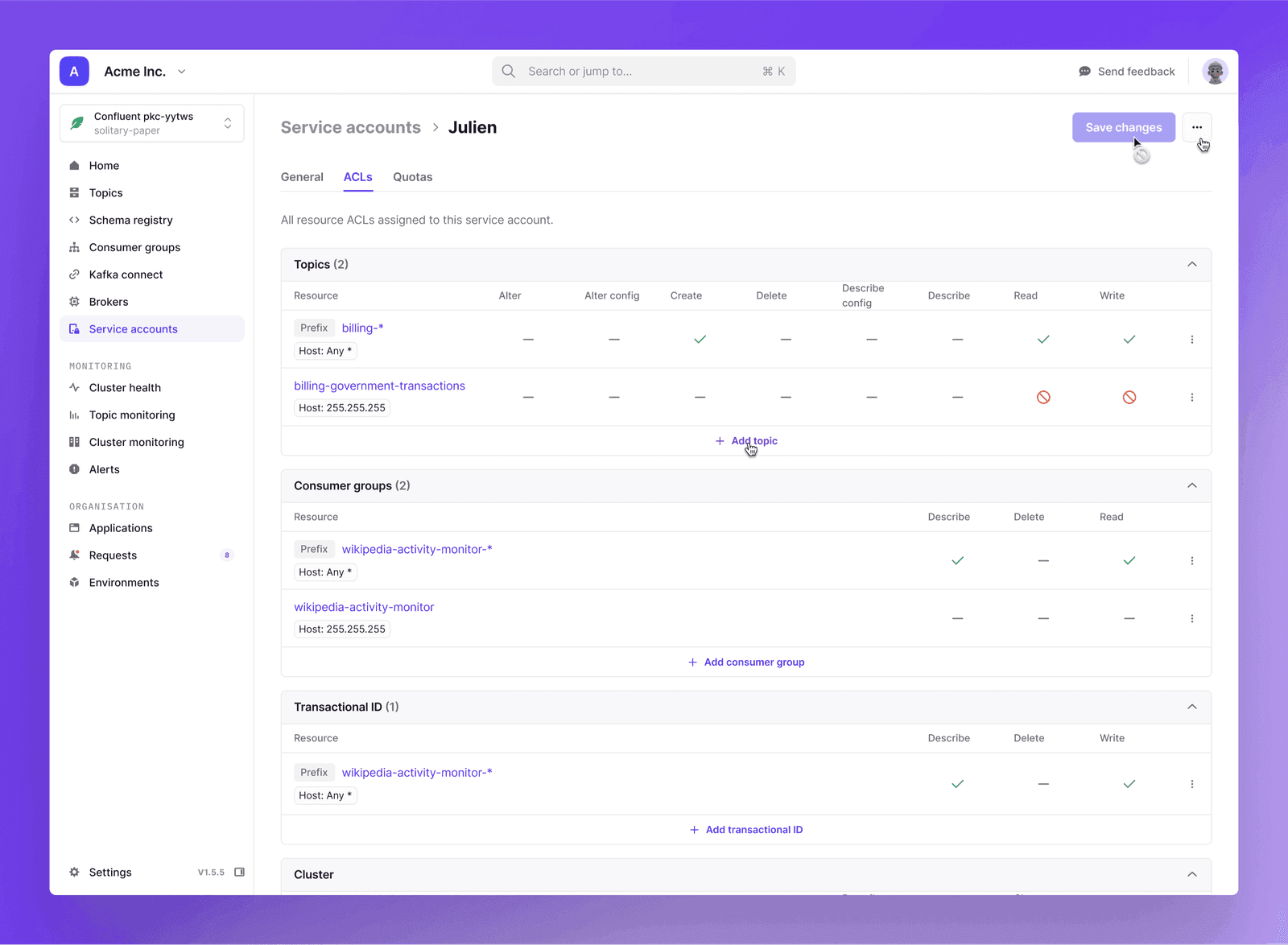 Platform Architects and Ops Leads: Console brings security, governance, and compliance to a centralized Kafka deployment. No more "open bar" environments creating risk when Kafka is business-critical.