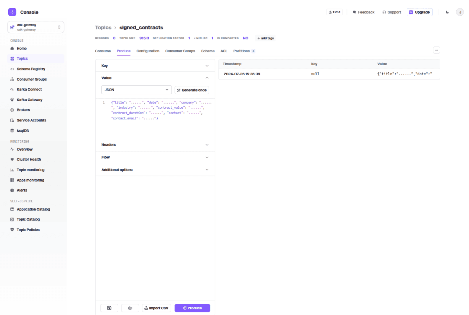 Go to 'Kafka Gateway'. You will see an existing interceptor that maps decrypted_signed_contracts to signed_contracts (created by the previous POST command).