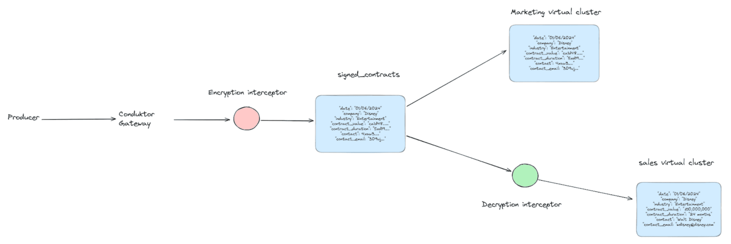 Conduktor Gateway solves this with configuration-only encryption. No new applications. Messages with sensitive fields can be encrypted for some teams and decrypted for others.