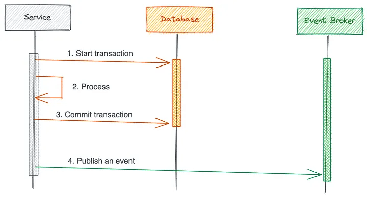 The Transactional Outbox pattern solves this by making the database the single source of truth: