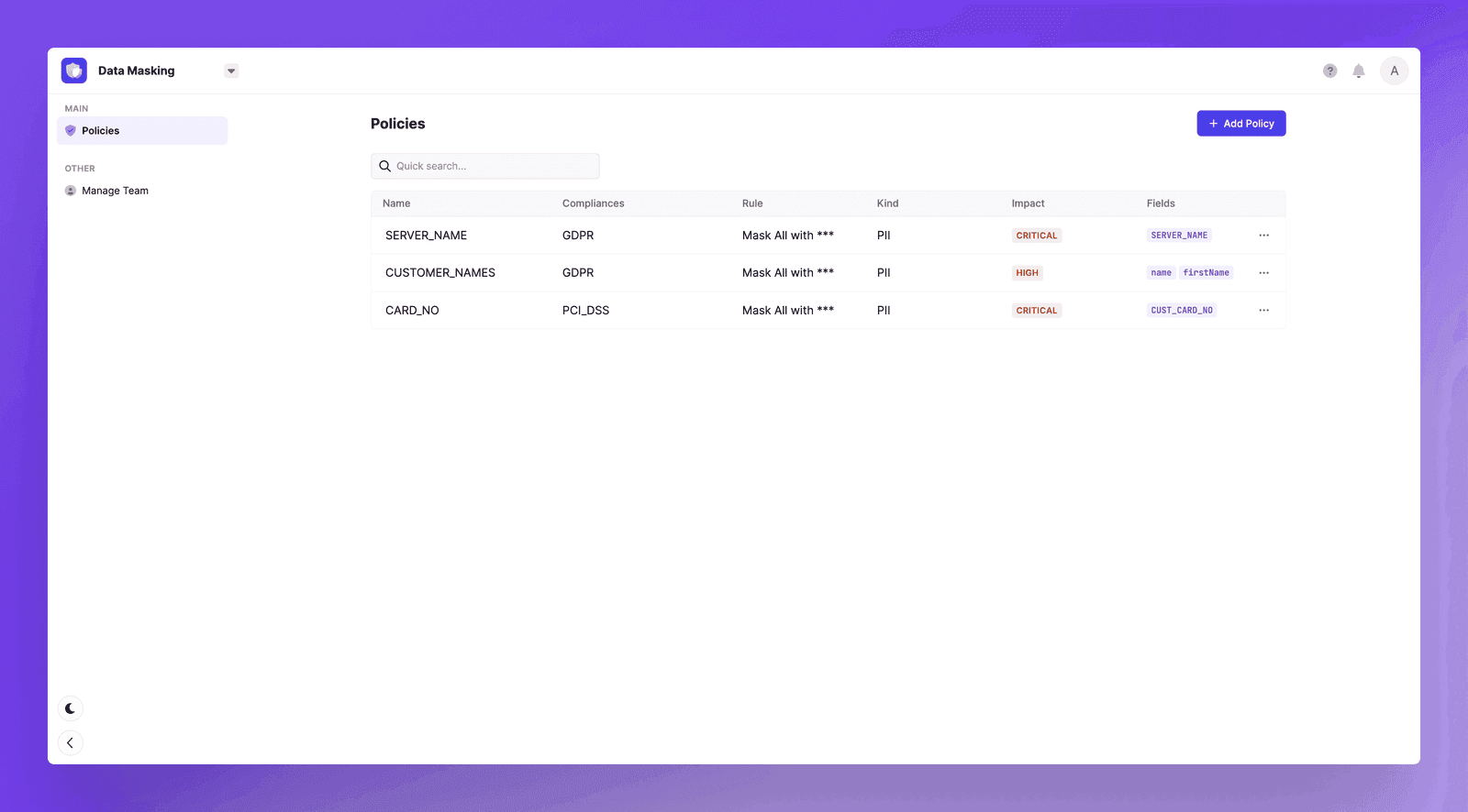 Policies work across multiple clusters. Exclude specific users or groups from global rules when needed. Sensitive data stays protected without blocking debugging work.